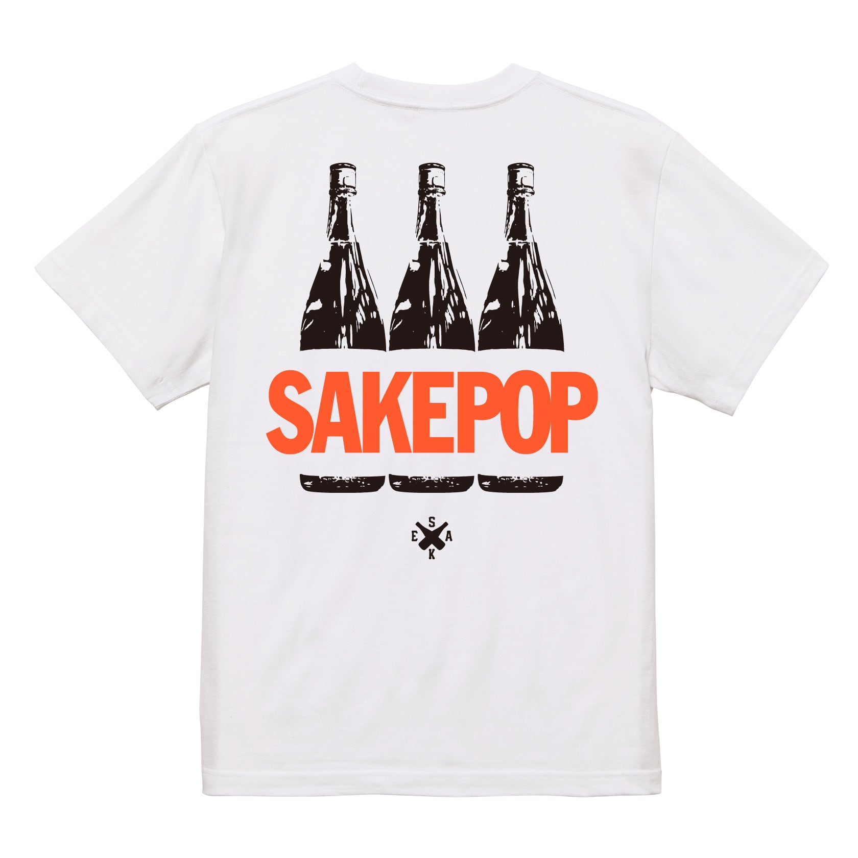 【SAKE Tシャツ】SAKEPOP 一升瓶 TEE / ホワイト x オレンジレッド
